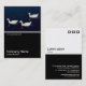 A business card template design with a white edged black lower half. The front design includes a photo or artwork in the top half. The same theme is repeated on the back without the image, allowing room for other details and further customisation. The three squares motif used as a decorative feature on the back is from one of Zazzle's useful picture fonts and can be used as a decorative feature or replaced with your own logo or decoration.