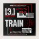 13.1 in Training - 13.1 miles half-marathon running gear. Modern art for men or women half marathon runner. Bold lines and chevron arrows make an abstract inspirational image. >> Red, white and black cutout lettering, typography word art for training to run a half marathon race. >> Customisable artwork. Add YOUR OWN personal name or message. Click "Personalise this template" or create your own additional text, background shape, graphic, etc. to customise the final design.
