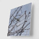 Far off in the distance, there lies a half moon as it is surrounded by budding trees. This photography is perfect for spring time/nature lovers.