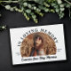 Memorial service guest book in white with black text and your loved one's photo in a half moon shape with In Loving Memory in curved text above the photo. Let friends and family honour your loved one with a personal message in this funeral guest book personalised with photo, name, and years living.