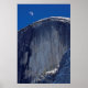 This photo features a half moon rising over Half Dome in Yosemite National Park.