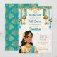 Half Saree ceremony cute Indian girl bue and gold Invitation