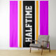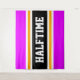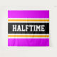This sporty, athletic design features bold HALFTIME text inside a highlighted wide black stripe with double white and yellow racing stripes against bright tropical pink outer stripes. The text in this design can be personalised.