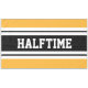 This sporty, athletic design features bold HALFTIME text inside a highlighted wide black stripe with double white racing stripes against golden yellow outer stripes. The text in this design can be personalised.