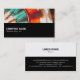 A clear stylish modern business/profile card template with an image or artwork in the top half and a black bottom half. The image in the front top half can also be changed. The reverse side has the same black half footer with a white or light colour top half. Company name, etc on the front with name and other contact details arranged on the back. This card can be customised in a variety of ways.