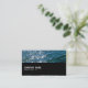 A clear stylish modern business/profile card template with an image or artwork in the top half and a black bottom half. The image in the front top half can also be changed. The reverse side has the same black half footer with a white or light colour top half. Company name, etc on the front with name and other contact details arranged on the back. This card can be customised in a variety of ways.