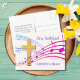 Stylish SING HALLELUJAH CHRIST IS RISEN Easter Postcard, showing a gold coloured empty cross in amongst colourful music staves. The Easter text appears in a mauve colour. These words will be sung by Christians the world over to celebrate the resurrection of our Lord Jesus Christ at Calvary. On the reverse you can CUSTOMIZE and personalise the Easter greeting with words of your own choice, and add your name. This modern Christian Easter postcard would make a great postcard to send to your family, friends and clients to celebrate Resurrection Sunday. Choose from a wide selection of faith-based Christian Easter designs on cards, invitations, home decor, clothing and gifts, designed by Berean Designs.