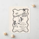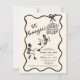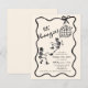 Adult Halloween Party invitation featuring skeletons and disco bal with a wavy border and bow. Hand drawn style.