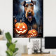 Halloween Airedale With Pumpkins Scary Poster