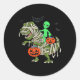 Halloween Alien Riding T Rex Fun Boys Girls Kids Classic Round Sticker