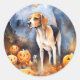 Halloween American English Foxhound With Pumpkins Classic Round Sticker