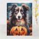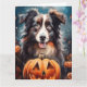 Halloween Australian Shepherd With Pumpkins Scary Card
