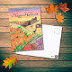 Happy Halloween harvest folk art postcard, with an orange pumpkins design on a colourful autumn day. With black script typography lettering, you can customise with your own text. I created this piece with coloured pencils and pen to create a folk art fall foliage theme. A perfect harvest or halloween decoration to celebrate!