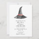 Cute and simple elegant Halloween theme 2-sided baby shower invitation. Back side includes Gift registry information with QR code. Modern and minimalist style baby shower invitation. Features hand-painted watercolor witch's hat.