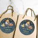 Halloween cute baby ghost pumpkin brewing pot baby shower favour gift thank you stickers. A cute baby pumpkin ghost with a cat candle, mushroom and a huge pot watercolor on a dark starry night background for Halloween themed baby shower.