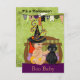 Halloween Baby Shower Invitation with Crib and Black Cat, Witches Hat and Vintage Baby
