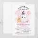 Celebrate your little pumpkin with this adorable Halloween baby shower invitation! Featuring a sweet watercolor ghost holding a balloon, pastel pumpkins, and pink accents, this “A Little Boo Is Almost Due” invitation is perfect for a fall or October baby shower.