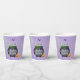 Boo! Add a touch of fun to your party by letting guests drink out of these spooky cauldron baby shower cups that matches our "A Baby is Brewing" Halloween baby shower collection. The design features a purple night sky with a bubbling cauldron, bats, apumpkin and a skull.