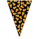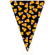Banner flags are shown here in a festive Halloween candy corn print.