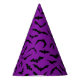 This party hat is shown in a purple colour with a Halloween bats print.