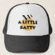 Black bats flying over a yellow moon with the words A Little Batty. Funny Halloween bat design.