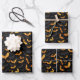 These wrapping paper sheets are shown in a festive Halloween bats print design.