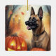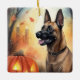 Halloween Belgian Malinoi With Pumpkins Scary Ceramic Ornament