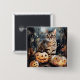 Halloween Bengal Cat With Pumpkins Scary 15 Cm Square Badge