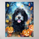 Halloween Bernedoodle With Pumpkins Scary Poster