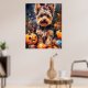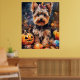 Halloween Biewer Terrier With Pumpkins Scary Poster