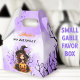 Halloween Birthday small gable favour boxes for little girls with a cute little witch and pumpkin in purple, black and orange. Easily personalise all the text. You can choose from 3 sizes of these gable favour boxes - Kate Eden Art