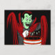 Happy halloween birthday greetings- Dracula is all dressed up in his grey suit and bow tie and flowing red cape. He has his hair slicked back. His face has a green pallor. But the vampire seems happy as he raises his cape and bares his fangs to blow out the candles on his orange and black birthday cake sitting on the table. Perfect Halloween birthday design and birthday greeting for anyone that has a birthday on Halloween. There are different Halloween birthday styles and sizes, too. Make it a personalised Halloween birthday greeting by adding a name, a personal birthday greeting, or whatever you wish. Buy this cartoon Halloween vampire birthday design on many other gift ideas, including matching vampire birthday shirts in different styles and other apparel for babies, toddlers, kids, men, and women. Get a vampire birthday hoodie or sweatshirt for the winter. Add matching vampire stickers, cute Halloween tote bags, vampire birthday magnets, vampire cartoon coffee mugs, and many other items, as we have this unique Halloween birthday design on lots of products, including office supplies and many birthday gifts, in our Zazzle store.