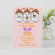 ORANGE AND PINK HALLOWEEN BIRTHDAY INVITATION, CUTE DESIGN WITH GHOSTS, AND TRICK OR TREAT SIGN.