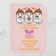 ORANGE AND PINK HALLOWEEN BIRTHDAY INVITATION, CUTE DESIGN WITH GHOSTS, AND TRICK OR TREAT SIGN.