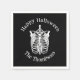 Spooky Skeleton X-Ray design will sure to make your Halloween gathering extra eery. Watch out for ghouls and ghosts. A whimsical drawing of a Halloween skeleton with an X-Ray effect, black and white outlines, and charcoal effects. This design features Halloween spooky scary skeleton, happy Halloween cool typography, Halloween party napkin supplies, paper napkin cocktails minimalist simple, Halloween October party supplies, whimsical fun funny party décor, custom customise the family name, x-ray bones rib cage, trendy unique cool Halloween,