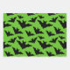Halloween black bats green cool spooky pattern wrapping paper sheet
