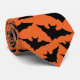 Cool, fun and unique Halloween tie, gift idea for anyone. Halloween black flying bats spooky silhouette holiday pattern. Hallows Eve flock of black bats. You can customise orange colour.