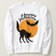 Halloween black cat and bat with orange moon clipart illustration, happy halloween graphic design.
