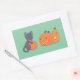 Halloween Black Cat and Pumpkins on Green Rectangular Sticker