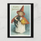 Halloween Black Cat and Witch Girl Postcard