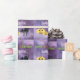 This wrapping paper is designed for the child celebrating a birthday near Halloween. The design features watercolor graphics of pumpkins and a cute black cat on the watercolor purple background.
