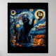 Halloween Black Cat Comma La Starry Night Art Kama Poster