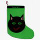 This awesome Christmas stocking features a black cat with pointed ears, bright green eyes and a sly red grin. This creepy kitty is perfect for Halloween or for cat lovers. There is customisable text so you can personalise this stocking.