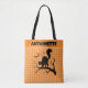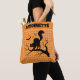 Halloween Black Cat on Tree Orange Gingham Plaid Tote Bag