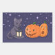 Halloween Black Cat Pumpkins Lantern Purple Rectangular Sticker