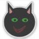 This awesome shaped sticker design features a black cat with pointed ears, bright green eyes and a sly red grin. This creepy kitty is perfect for Halloween or for cat lovers.