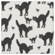 This is a graphic art design of a black silhouette of black cats in a random pattern. The seamless background (BG) is white creating a bold contrast.