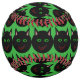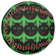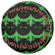 This awesome softball features a black cat with pointed ears, bright green eyes and a sly red grin. This creepy kitty is perfect for Halloween or for cat lovers.