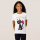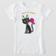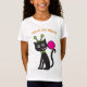 Imagine a delightful Halloween T-shirt for kids featuring an adorable black cartoon cat dressed in a playful Martian costume. The cat’s large, expressive eyes peek out from beneath a fun antennae. The cat cheekily holds a colourful lollipop in its mouth, adding to its mischievous charm. Above this enchanting scene, the shirt proudly displays the words “Trick or Treat” in bold, playful lettering with a slight spooky twist, perfectly capturing the fun and excitement of Halloween night. This T-shirt combines cuteness and creativity, making it a perfect choice for kids to celebrate the holiday with glee.