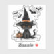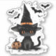 A Cute scary Halloween sticker with a black cat witch and bats.